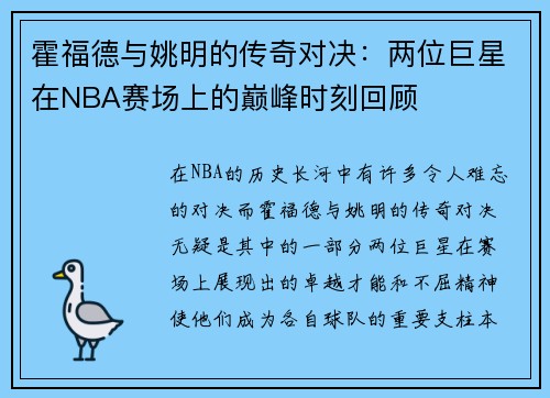 在当今体育界,小罗和姚明这两位传奇球员的名字无疑是响亮的代表。他们不仅在各自的领域中取得了辉煌的成就,更通过友谊与合作,共同为篮球运动书写了新的篇章。小罗以其独特的技术和风格征服了世界,而姚明则以其身高和智慧影响着篮球的发展。本文将从四个方面探讨他们如何携手共创篮球传奇新篇章,展现体育精神与友谊的力量。这包括他们在场上的默契配合、对于篮球事业的贡献、对年轻一代球员的激励以及他们在全球范围内推广篮球...