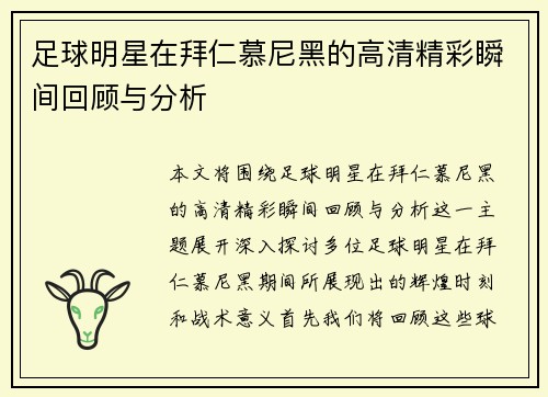 在当今社会,足球明星与娱乐明星的交集越来越明显。两者不仅在各自的领域内取得了卓越的成就,还通过不同的方式相互影响、合作与互动。本文将从四个方面对这一现象进行深入探讨:首先,足球明星与娱乐明星之间的跨界合作;其次,社交媒体上两者的互动;第三个方面是品牌代言和广告宣传中的联动关系;最后,将分析足球明星在娱乐圈中的个人发展。通过这些角度,我们可以更全面地理解这两类明星在现代社会中的共同点以及他们如何相互...